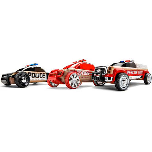 Elegant, with intelligent design and interchangeable parts. These minis feature incredible details, from shiny wheels to spare tires to a front brush guard! Rugged and fierce, this trio of award winners includes a police cruiser, a fire SUV and a rescue truck, measuring 4 in., 4½ in. and 5½ in. in length respectively. From Automoblox, for ages 3-10 yrs.