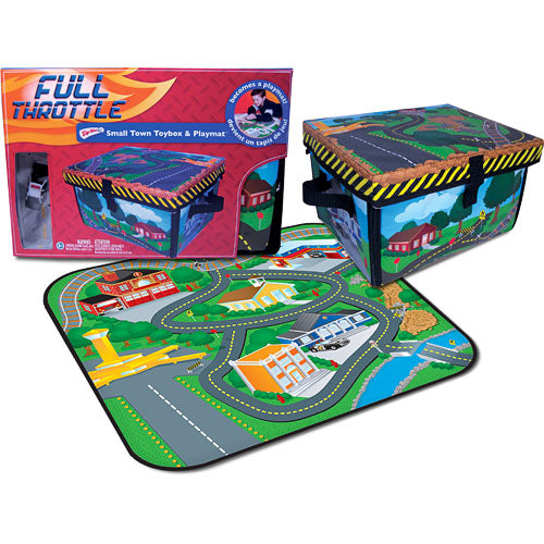 The ZipBin Full Throttle Small Town Toy Box Playset is perfect for planes, trains, and automobiles, even trucks and construction equipment. Create your own environment or use the town already there but when the day is done and drivers are tired, park your machines in the elasticized pockets under the lid. Weighing only one and a half pounds, it has soft sides that are easy to zip into place and handles for carrying. After a day of play it is ready to store, stack and stow for another big day around town! Include 1 die-cast car. Have fun and decorate your room with all Neat-Oh! Full Throttle products. Ages 3+. We ARE kid's storage. Zipbin Products. Keep IT Together