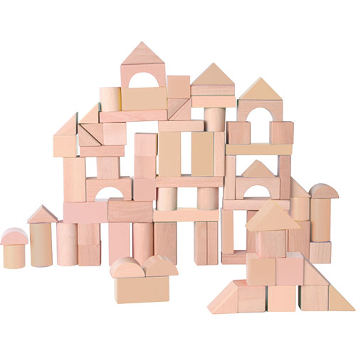 Blocks are made of solid wood. Lg. Blocks for little hands in 30mm size (1 in.) Helps in the development of hand-eye coordination. This classic 100 piece block set will engage children for hours of playtime fun and will help teach shape, color, and size recognition. No