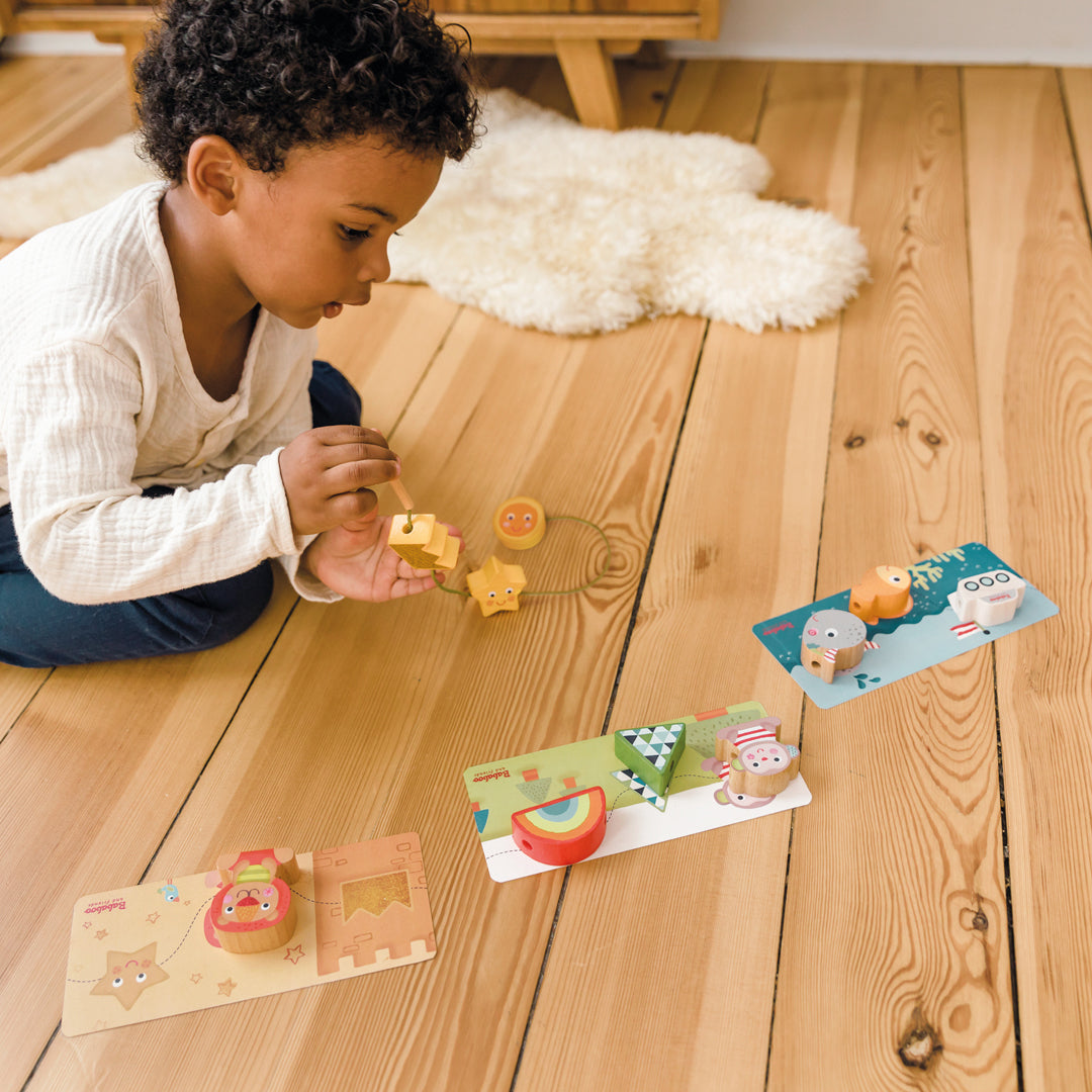 I'll thread the world just as I like it. The Adventure Threading Game motivates your little ones to arrange the beautifully designed building blocks and figurines over and over again in different sequences and patterns. They can be counted, sorted, stacked and, of course, threaded. Through play, this promotes dexterity and creativity in your young adventurers aged 18 months and up. With each new arrangement on the string, a new story can emerge, bringing parents and children together through play.