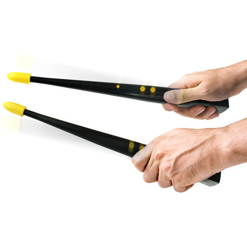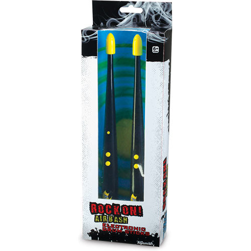 Switch on the 12" drumsticks and swipe them through the air. Features buttons for different drum sounds and rock melodies. Requires four AAA batteries (not included).