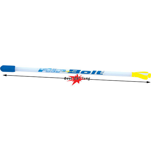 Send missiles rocketing skyward at over 90 fps (feet per second). Airbolt is second to none in distance and time aloft. We have tested it against every major competitor. Airbolt out-distanced all of them. Airbolt uses a proprietary missile that is incredibly durable. Your shoes will wear out from tracking down the missiles before it gives out. It has a foam nosecone for soft landings and because it's extremely light and long it can travel much greater distances than anything in its class. Our missiles will travel far beyond your expectations. The only question now is how far? Send us your distance records and we'll post them on our website (no fish stories)...