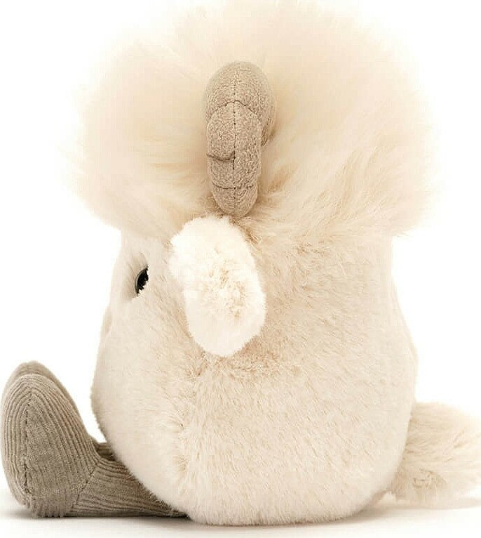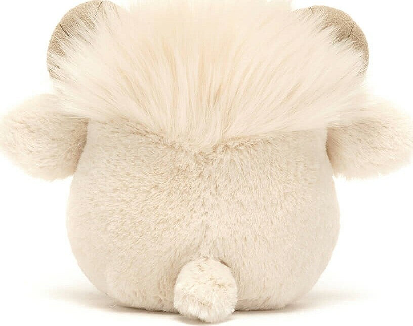 The pasture coiffeur, Amuseabean Ram is a dandy among the daisies! With a shock of splendid creamy-soft fur, curly stitch horns and cocoa boots, this petal-eared poppet is one special scamp. Chonky-soft in buttercream fur, with a tiny tail and a sunny smile, Amuseabean Ram is sheeply amazing.