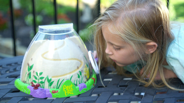 This is the most realistic Ant Habitat ever! The fascinating Inside/Outside cutaway design allows you to watch ants dig, excavate, forage, and problem solve. Includes escape-proof locking lid, "easy dig" sand, sand rod, and voucher to redeem for 50 live Harvester Ants. New habitat details like a 3D horned lizard design and ant-themed magnifying glass for up-close viewing excite little learners. We cannot ship to Oregon. (Shipping fee required). Ages 6+