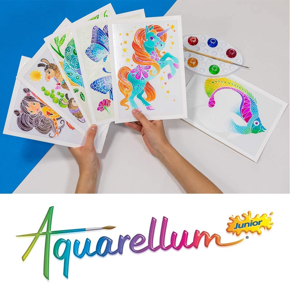 Fantastic! With just a few drops of paint all children can create a true masterpiece! Aquarellum Junior is based on a masking technique on vellum paper, allowing the paint to adhere only to selected areas. The design is gradually revealed with every brush stroke and may be painted over repeatedly to obtain a perfect picture. This activity is ideal to initiate children in the art of painting, understanding the mixing of colours and stimulating their imagination
