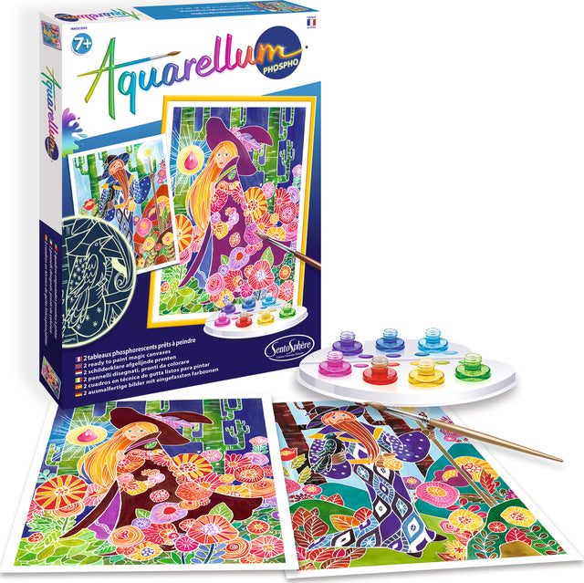 For the 20th anniversary of the Aquarellum range, a special phosphorescent masked outline was designed! After the illustrations are coloured in, the magic will last a little longer... Once the lights are out, the outlines will brightly shine!