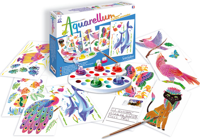Personalise your post cards with your choice of colours. The colouring is easy, and quick, thanks to the masking technique on vellum paper, allowing the paint to adhere only to selected areas.