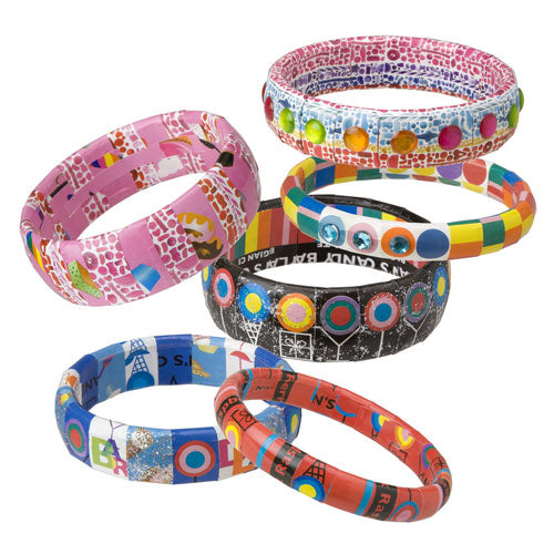Includes 400 candy wrapper stickers, 90 sticky gems, 6 bangles in 3 widths, glitter glue, burnishing tool and easy instructions.