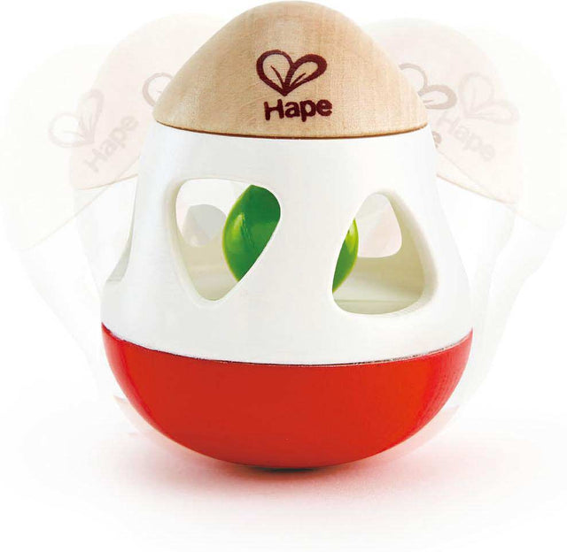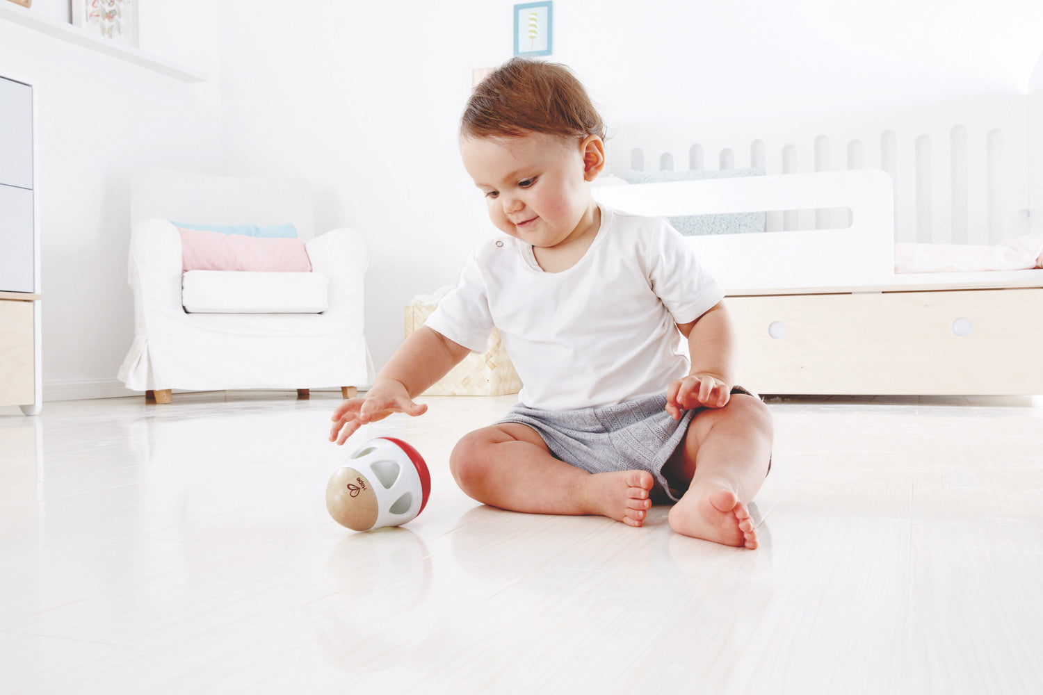 Roll this clever rattle away from you and it rolls right back - a little like a boomerang. Easy for small hands to grasp, it has a pleasant-sounding bell inside. Cut-out sections in the side mean that babies can get a firm grip even if their gross motor skills are still developing. It's safe to chew and durable enough to drop on the floor.