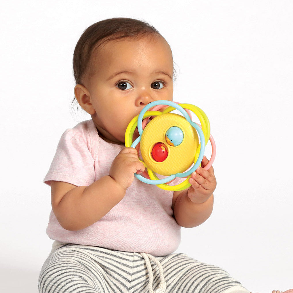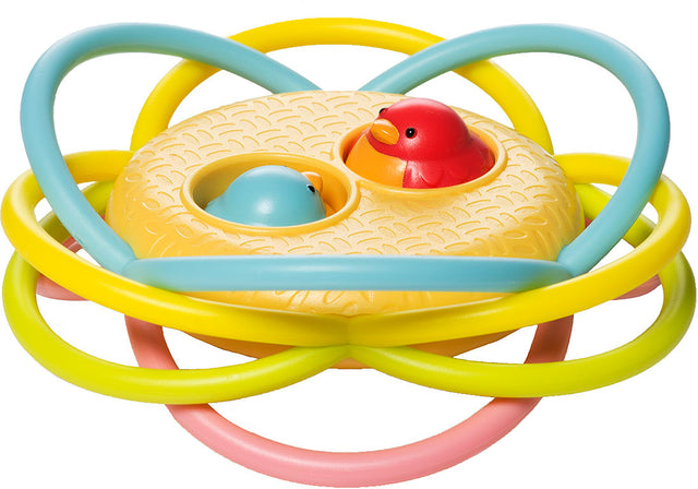 Bye bye birdie! The Birdie Hide-N-Seek offers a fun learning experience for your young one. Push one birdie down and the other pops up, showcasing simple cause and effect for baby. As each birdie is pushed down, a chirping sounds are presented. The attached loops are made from soft, pliable plastic that is perfect for grabbing and teething. Colors on the Birdie-N-Seek are vivid and sure to grab baby's attention. This may seem like a simple game for your young one, but you will find them completely in awe and excitement while playing with the moving birdies. Since 1979, Manhattan Toy has been making award-winning, high quality, educational toys for your baby, toddler or kid. From infant toys and baby toys to sensory development toys, our goal is to provide the safest and best toys available. All of our products, from the newest concepts to our time-tested classics, are innovatively designed to inspire imaginative play and are routinely safety tested to pass strict CPSC, ASTM, EN71 and Health Canada safety standards.