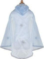 Cast icy spells with our classic Snow Queen Cape. Made from blue crystal organza, this cape features silver glitter sparkle stars, and a large hood. The entire cape is trimmed in silver braided trim for some extra added elegance.