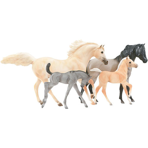Cloud's Legacy: Wild Stallion Returns! Follow the saga of the wild, nearly white stallion and his two young colts as they face new dangers in Emmy Award winning filmmaker Ginger Kathren's sequel to Cloud: Wild Stallion of the Rockies, a beautiful documentary series. This set includes four horses: Cloud, his blue roan mare Sitka, and his two foals, the palomino son Bolder, and grullo stepson Flint.