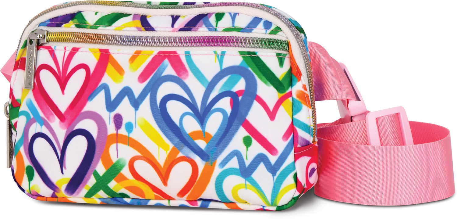 Corey Paige is a young New York artist using the power of art to make the world a brighter place. Inspire happiness for tweens and teens this summer with this adjustable zippered belt bag featuring one of her colorful heart designs! Perfect for summer festivals, travel, and everyday wear.