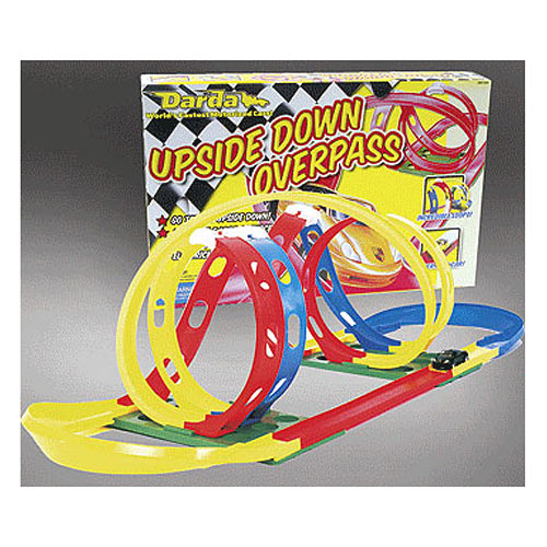 The more complex track layout of Upside Down Overpass means more loops, more thrills and even more possibilities! Power up the Porsche Boxter(R) to go totally upside down five times in a row. Watch the car speed through an awesome five-loop corkscrew or create your own gravity-defying layout. Set includes illustrated instructions for 3 layouts.