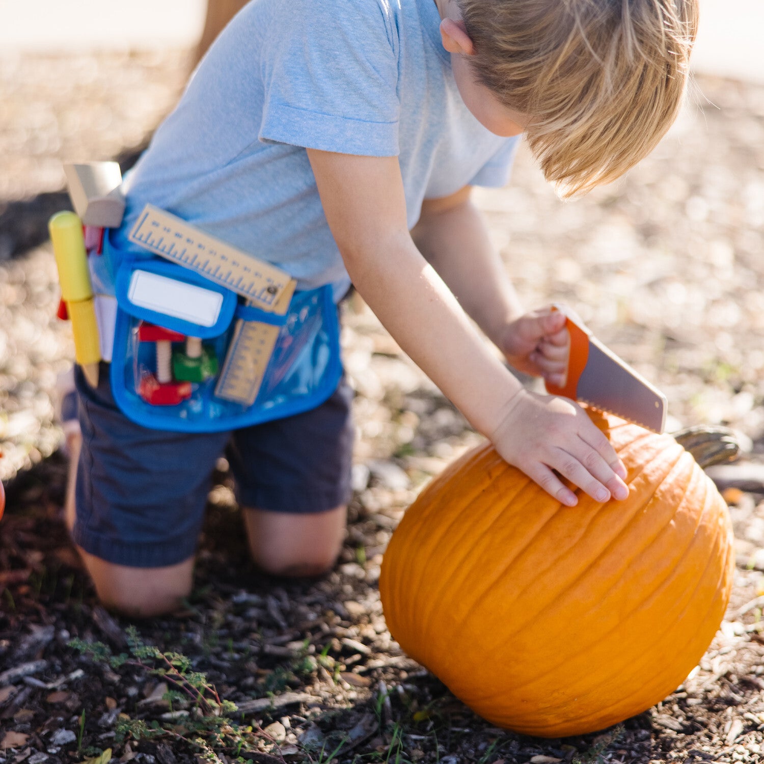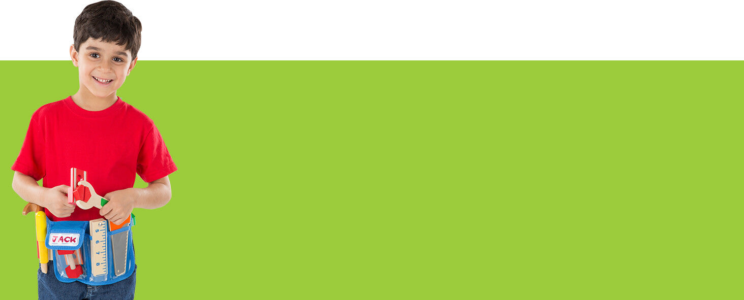 Give little builders all the tools they need to for truly constructive play! Five child-safe wooden tools-hammer, screwdriver, wrench, ruler, and painted saw- fit snuggly in the adjustable tool belt and a child's hand. Saw apart the self-sticking blocks and use the nuts and bolts or safety nail (no sharp points) to connect them again! A name tag on the sturdy tool belt can be personalized with a pencil or washable marker. This set helps teach sorting, problem solving, and counting skills, and encourages fine motor skills, hand-eye coordination, and imaginative play.