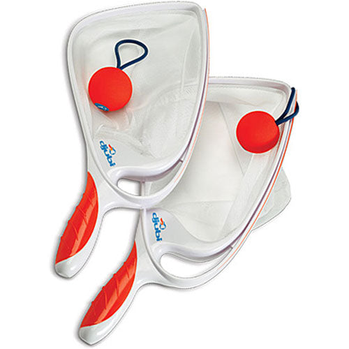 (Joo-bee) Djubi is the hook it, launch it, and catch it game. Two cleverly designed rackets combine with a unique ball for a game of long-range catch. The djubi (the ball) can fl y 100' and is great for the backyard and the beach. Includes 2 balls and 2 racquets. For ages 8 yrs-adult.