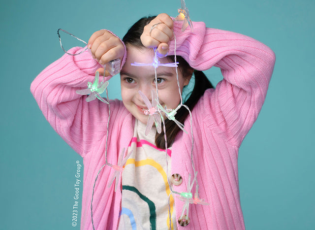 Take room decor to new heights with this string of 10 colorful LED dragonfly lights. On a 73 inch long string, in pastel shades of yellow, green, pink, and purple, these lights are sure to brighten the mood all year round for tweens, teens, or adults! For indoor use only. Requires 2 AA batteries, not included.