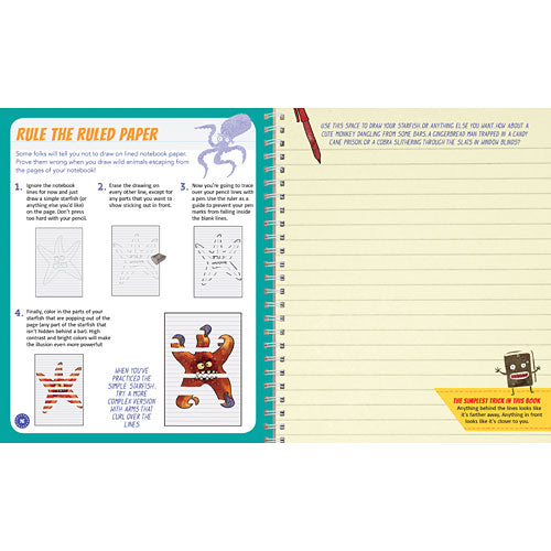 book: pencil, pen, ruler, and eraser-3D glasses not required! The drawing techniques in this book are just as fun for doodlers and scribblers as they are for aspiring artists. With inspiring illustrations of aliens, zombies, dragons, dinosaurs, and the like, you will learn about perspective and optical illusions, along with cool tools that professional artists, engineers, and video game designers use to bring their drawings to life. It's time to take your art to a whole new dimension (pun intended).