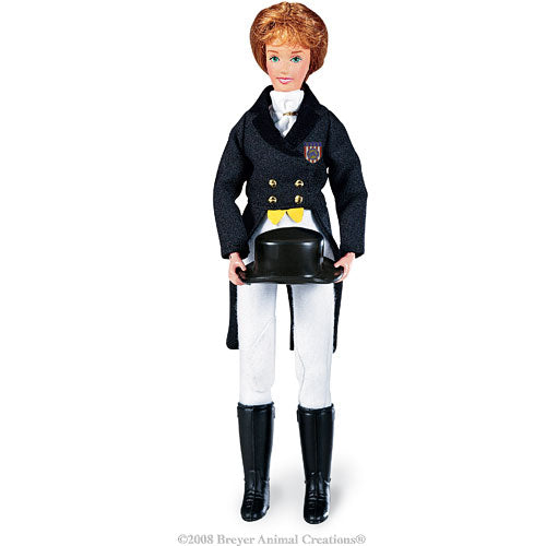 Megan is dressed in a formal shadbelly, white show shirt and tie, top hat, white breeches and black boots. Bears U.S. Equestrian Team crest.