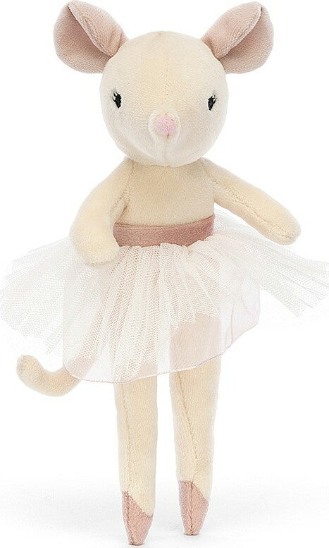 Dainty little Etoile Mouse is poised for practice. With sweet stitch lashes, satin shoes and a two-tone tutu of pink and white mesh, this mouse has swapped Camembert for cabriolé! A dainty star with petal-fold ears, a long loopy tail and soft vanilla fur, scampering onto center stage!