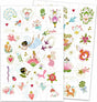 Two temporary tattoo sheets with a fairy theme. To the delight of children, they are sprinkled with little golden details! They are pre-cut, so they are easy to use: just apply a bit of water. Dermatologically tested.
