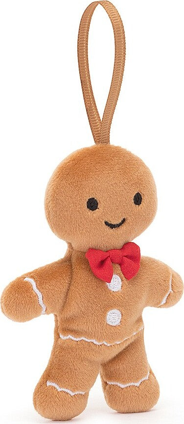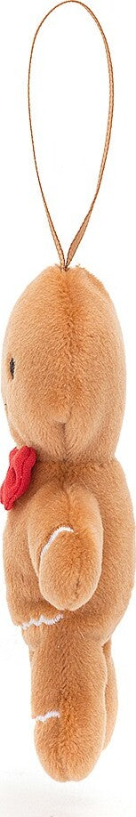 Festive Folly Gingerbread Fred is a dapper addition to your Christmas decor! With soft ginger fur, embroidered icing cuffs and buttons, a red bow tie and toffee ribbon loop, this smiley guy has impeccable style!