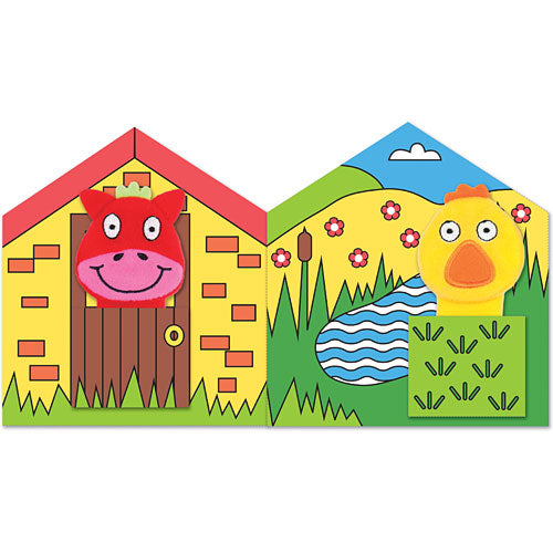 Set of 5 finger puppets and 6-page soft book with a pocket for each puppet. The smiley, colourful finger puppets will encourage baby to focus at varying distances as they follow the movements of your fingers.