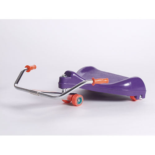 The Original Flying Turtle is everyone's favorite sit-skate scooter! It's simple to zip along any hard, smooth surface. No motor, no batteries, no pedaling. Rated as one of the Top 10 Toys by Parents Magazine, it is sturdy enough to hold 150 pounds. Tubular steel handlebars and super-fast wheel bearings prove its outstanding quality. Good news, it comes completely assembled and with a one year warranty for home use. Sit on the heavy-duty molded seat, put your feet on the bar, and simply swing the handlebars from side to side. You're off and rolling! So compactly built, it turns on its own radius.