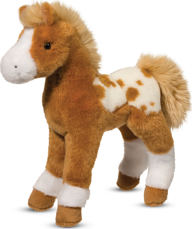 10"(25cm) this regal and handsome golden appaloosa foal is the perfect combination of realism and whimsy. With ultra soft fur and long fluffy main and tail a total show stopper.