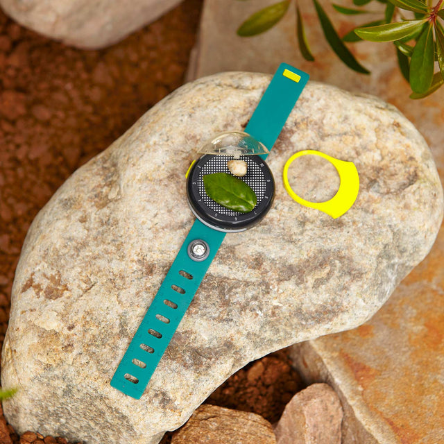 Everything kids need to get outdoors and explore-a collection and display dome, working compass, and four more tools-built into a cool wrist band!