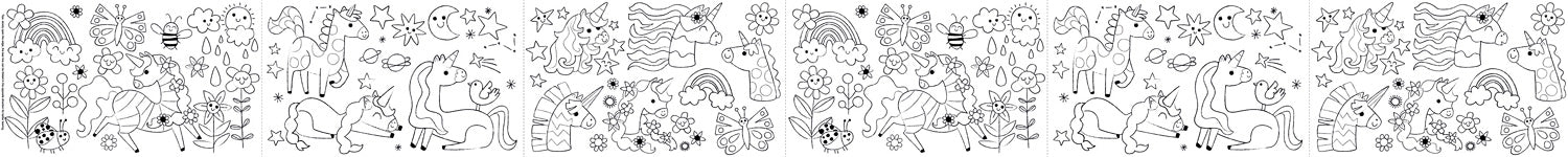 Unroll over 9 feet of magical unicorn illustrated scenes and characters! Toddlers immerse themselves in a world of wonder and spark imaginative adventures as they use the 12 included spiral crayons to color in each page. Pages are perforated for easy tear and display, and have adhesive on the back!