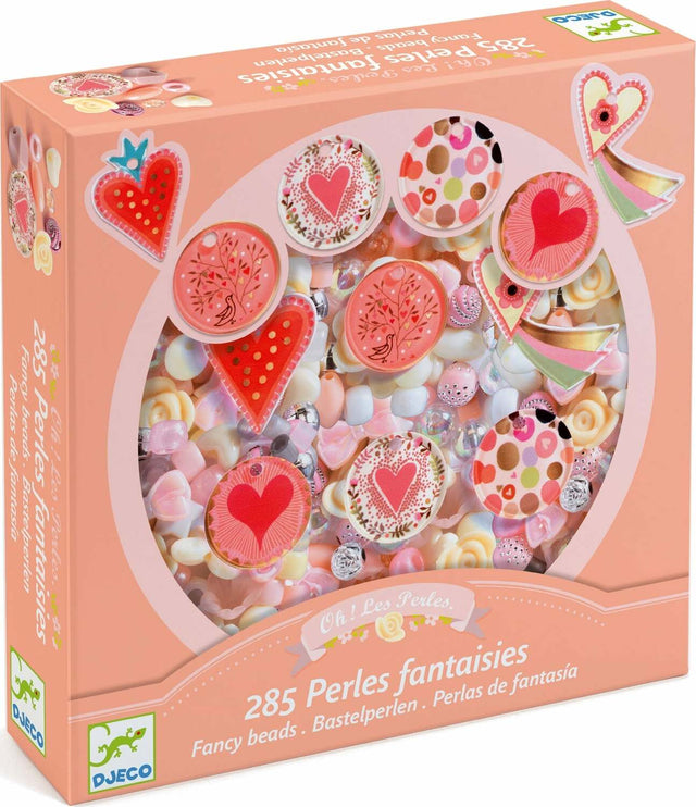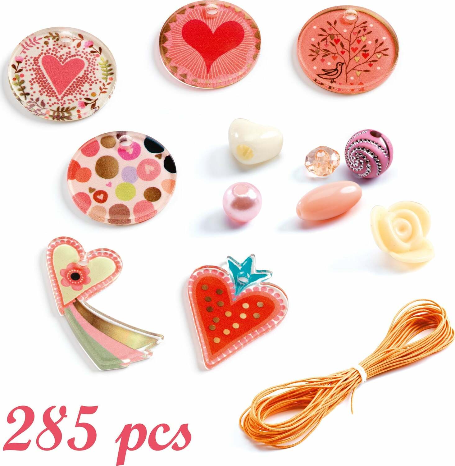 A set containing 285 acrylic beads and 6 "Heart" pendants for making pretty jewelry. A range of colors carefully selected to produce beautiful results every time. Children thread the beads onto the cord however they choose to make pretty necklaces and bracelets.
