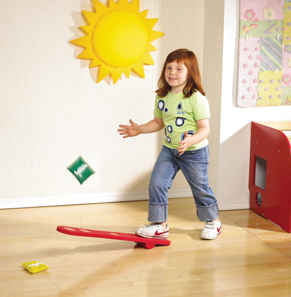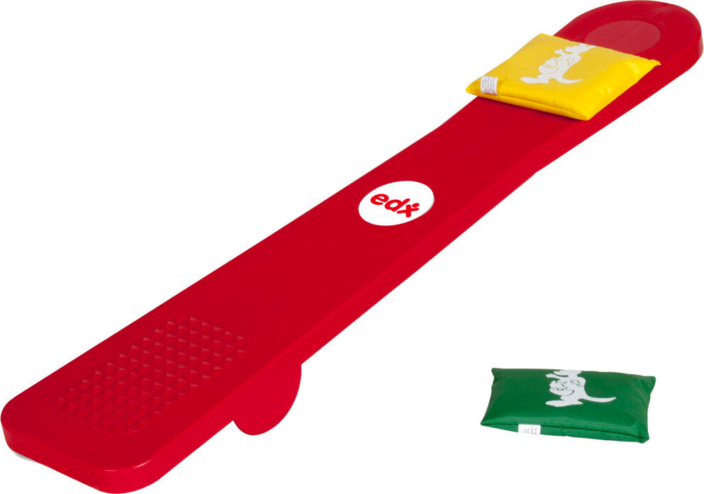 Improve hand-eye coordination while learning an invaluable skill, catching! Place a beanbag on one end of the 27.67" inclined plane and stomp on the other end, your beanbag sails in the air for you to catch. A wonderful activity your child will practice again and again! Includes 2 bean bags and a 28" plastic launching board. Bean bag colors may vary. Ages 2 and up.