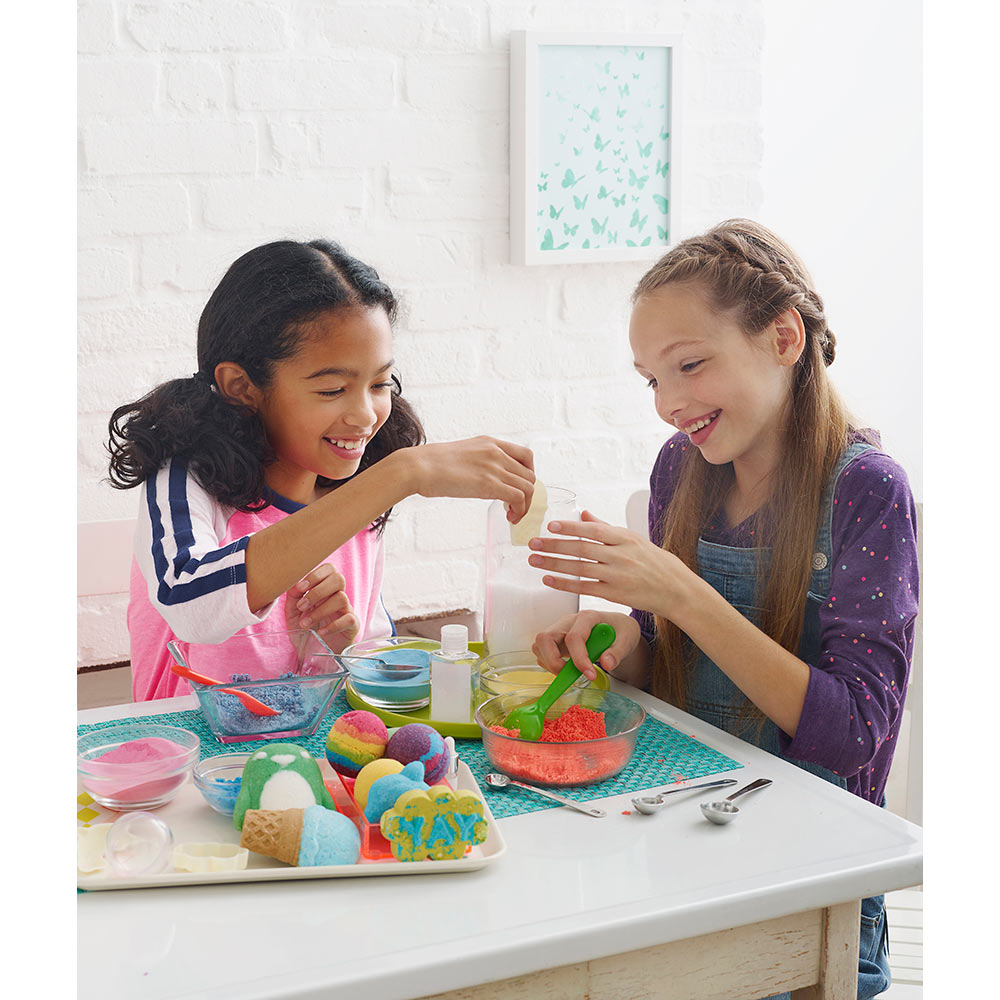 Transform the bath experience while learning the science behind fabulous, fragrant fizz! Includes 5 molds, colored baking soda, glycerin and a guidebook. Start running the water!