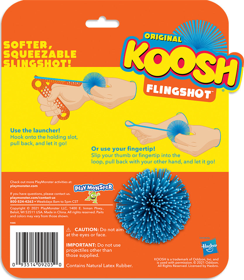 Shoot for the stars with the Koosh Flingshot! The same quality construction that has made Koosh® a top toy for decades has so many awesome ways to play! The Koosh Flingshot comes with a special Koosh ball made for flinging! Just pull it back with the Flingshot as far as you can and see how far it flies! Koosh is great for playing indoors, outdoors, at home, or on the go. Designed for effortless play, Koosh is easy to catch but hard to put down!