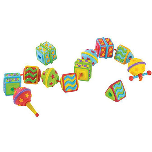 Lace-a-shape features 12 big soft lacing beads that are easy for little hands to hold and thread. The lacing beads are great for developing motor skills and hand-eye coordination and the bright colors and tactile features stimulate play and learning. Easy success encourages interaction and builds confidence.