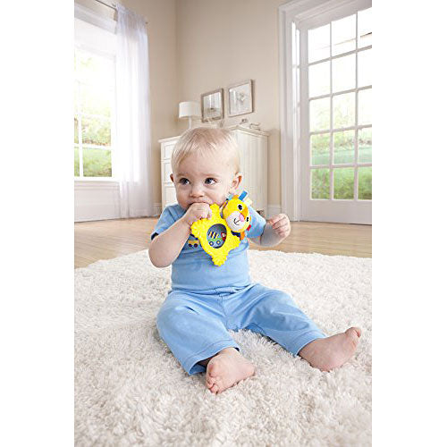 Logan the Lion Teethimal is an all-in-one rattle and teether that will keep baby happy with his bright colors, textured teething body, and crinkle and rattle sounds. Logan features bright colors and high-contrast patterns. His textured body is flexible, making it perfect for teething babies and enhances tactile exploration. The body is designed to be easy for baby to hold and the plush head is made with premium materials that Lamaze is known for. Lamaze inspires daily discoveries through toys created with delightful surprises that encourage baby to learn while playing.