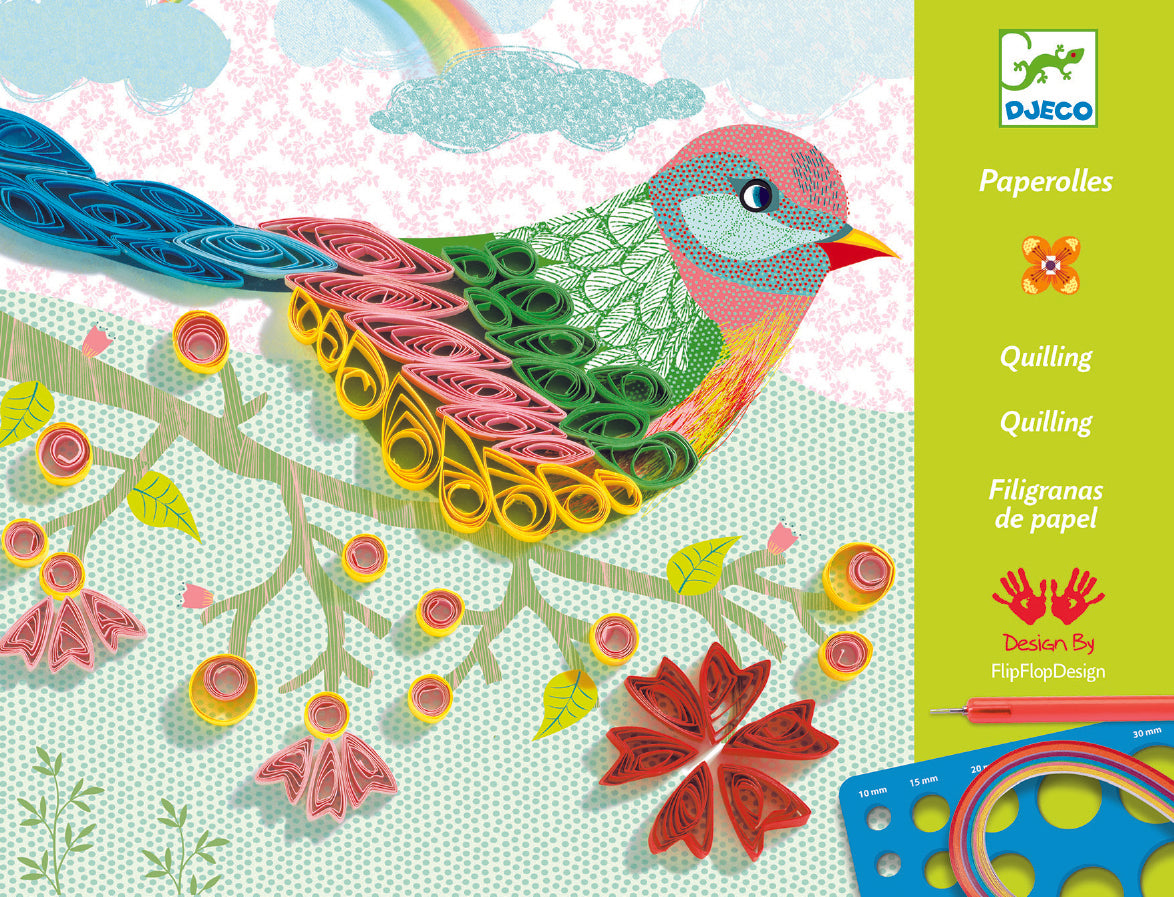 A classic, paper craft updated for today’s kids; use the tool to wind colored paper strips into unique shapes and “Paint” the pre-printed art board. The plastic template gets just the right shape, affix to the fashion model artwork with the glue sticks, i