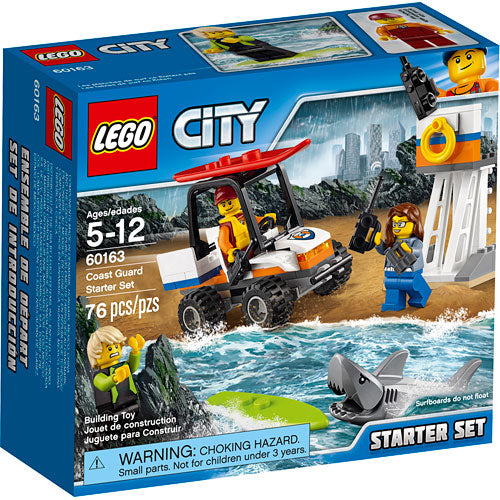 Grab your walkie-talkie and head to the LEGO City beach as part of the coast guard! Climb up into the beach tower and scan the waves for signs of danger and then call in back-up for the stranded surfer. Hop into the beach buggy and race to the water's edge, then grab the surfboard and paddle out to rescue the surfer before the shark gets closer. Every day is an adventure with the LEGO City coast guard!