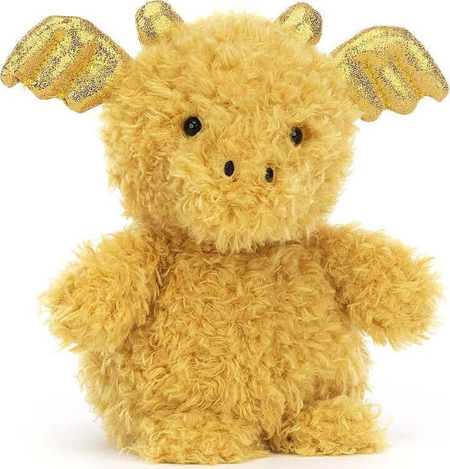 With soft, textured yellow-green fur and shiny gold wings and horns, it's Little Dragon! With a tubby tum and little arms and legs, this dragon loves cuddles and mythical adventures!