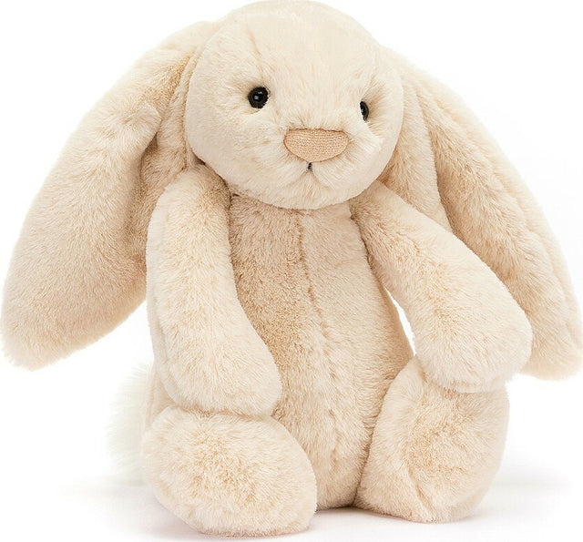 Bashful Willow Bunny Medium is a biscuity-golden dream to hold. With long flopsy ears, squishsquash paws, a huge pompom tail and a sweet shimmer nose, Willow's woodland-wonderful! A soothing gift for sleepyheads and a calming buggy companion. Hoping and hopping to make a new friend.