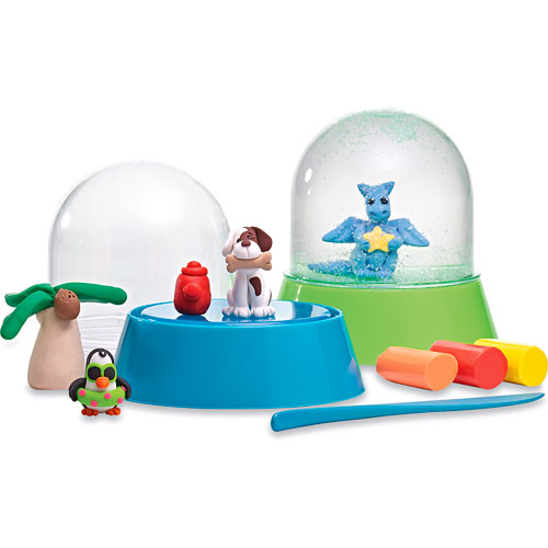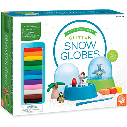 Turn someone's world upside down with creative possibilities! Using vibrantly colored oven-bake clay, kids create anything they like, from turtles to trains. The 2 snow globes are easy to assemble: just add water and micro-glitter, then trust the no-leak seal. It's a perfect "buddy activity," with each child making one for the other! Full-color instructions included. For ages 6-12 yrs, from MindWare.