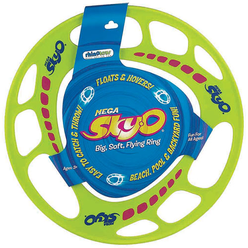 The Big Soft Flying Ring that seems to Float and Hover. Did we say Mega? We maybe should have said Giant! That's right, Mega SkyO is a whopping 18" diameter - that's a Foot and a half of super-soft, super-safe, flying fun. Great for the beach, the backyar