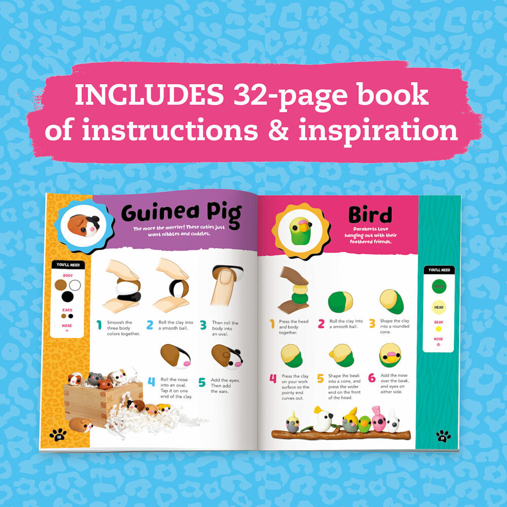 Build your own mobile pet adoption center and help these clay critters find their "furever" homes. Learn to make a variety of dog breeds, including a corgi, Chihuahua, Rottweiler, Dalmatian, and beagle, plus cats, birds, bunnies, and guinea pigs. You decide which animals you want to make with colorful clay and premade eyes to help make each creation picture-purrfect.