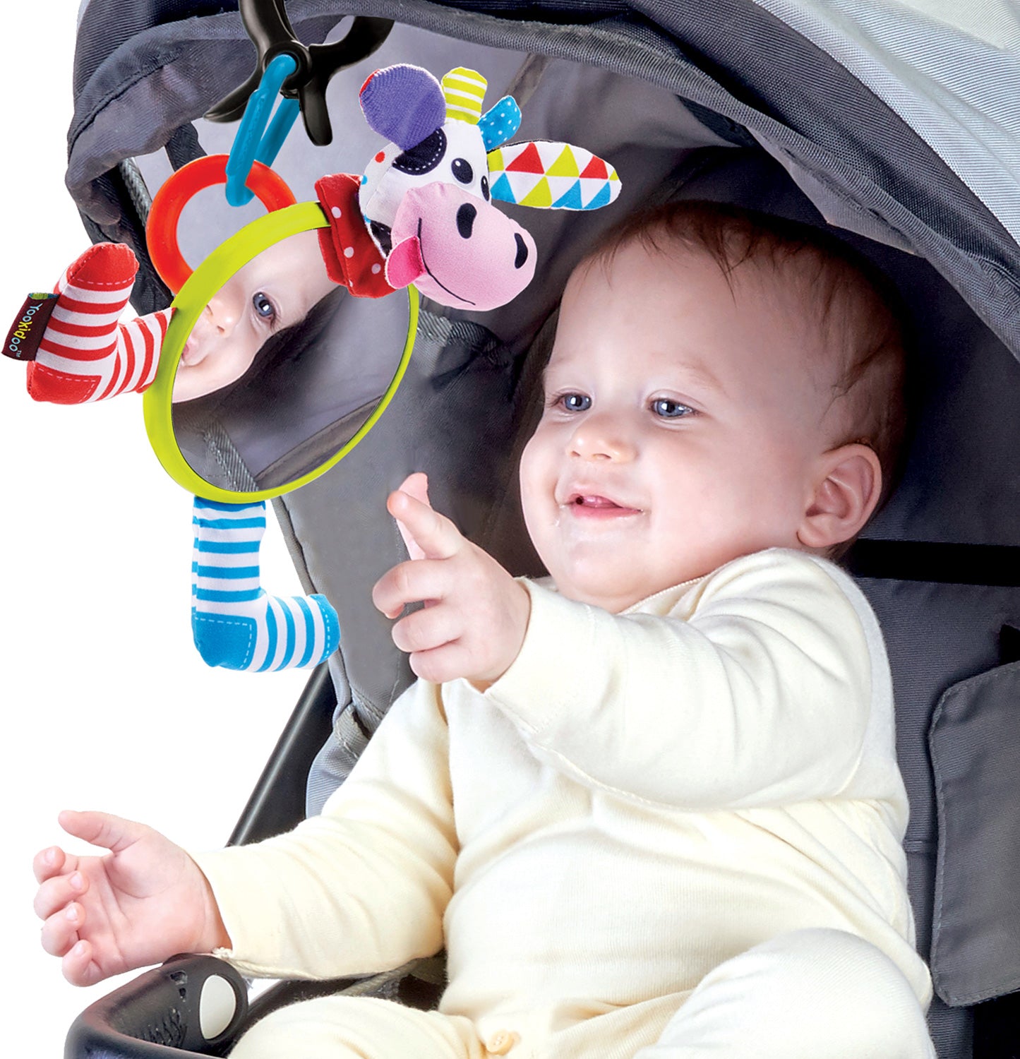 Attach to crib, gym & stroller or place upright on mat for tummy time