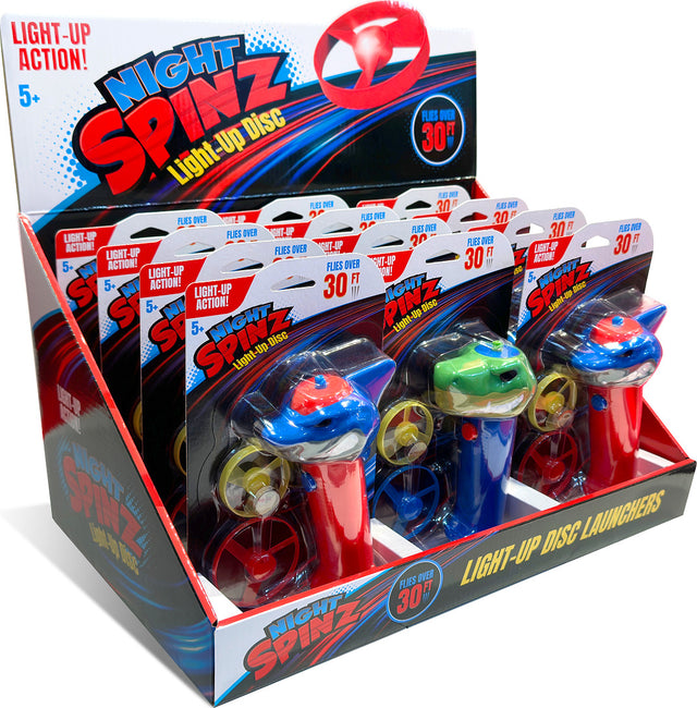 Light up the evening sky with new Night Spinz. Launch these 2 little rascals' propellers over 20 feet in the sky and track their flashing flight path through to their landing. Then do it again… and again!