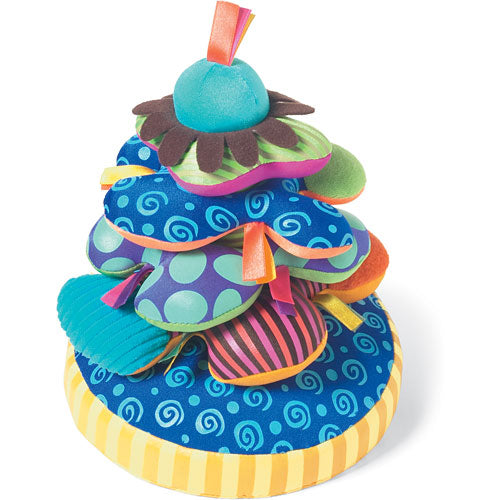 A sensory extravaganza, this premium-quality fabric stacker develops motor and problem-solving skills.