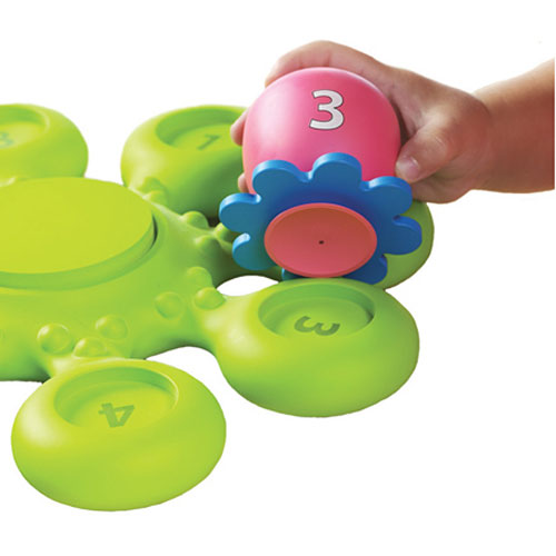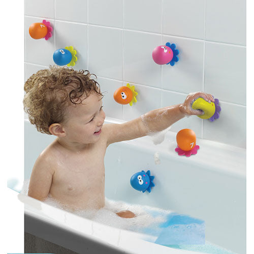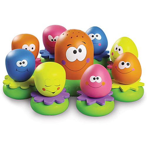 Calling all little squirts! The ultimate bath time toy includes mommy octopus and her 8 baby squirters, each with a suction cup that sticks to tiles or tub. Kids pour and squirt to their heart’s content as they play match games, role play and have fun getting clean. For ages 12-48 mos.