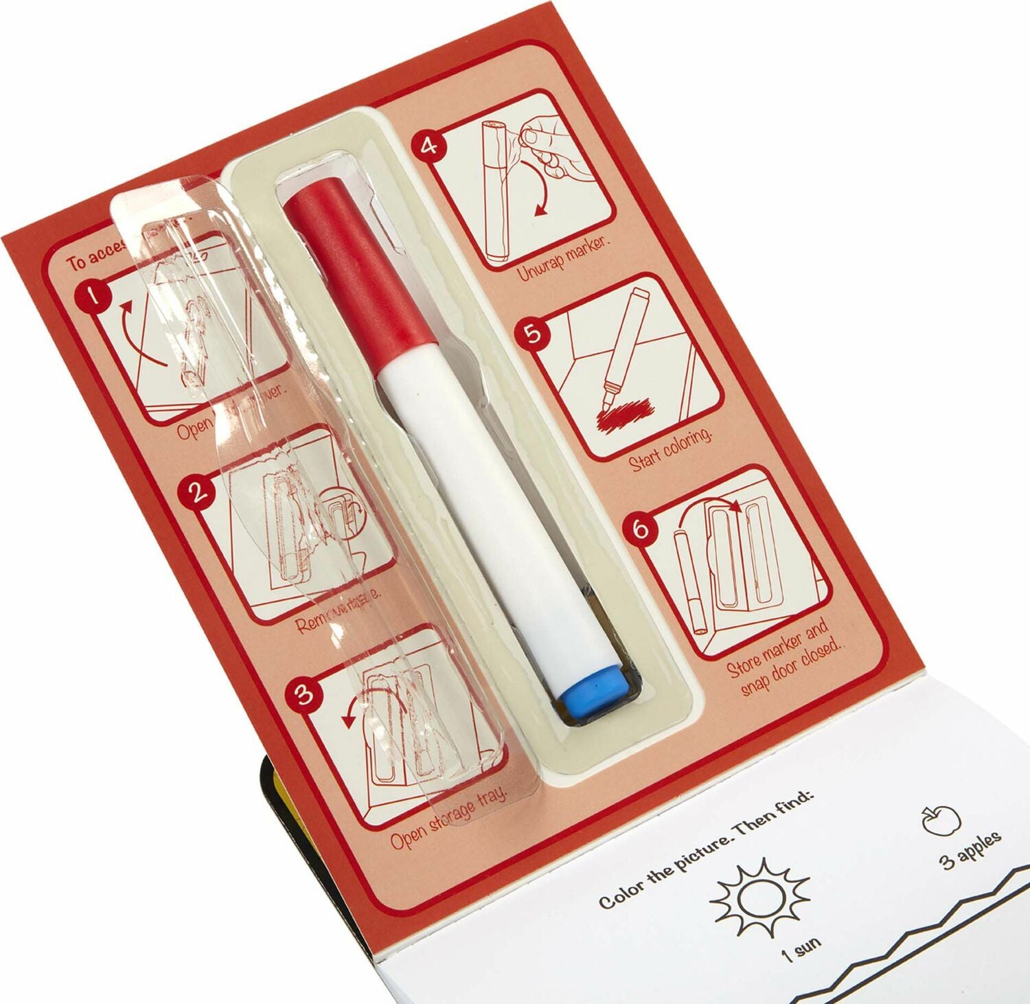 Use the "magic" no-mess pen to color in a picture, and see vibrant colors, details, and patterns appear! Each page of the 24-page activity book for kids three and older features exciting vehicle-themed artwork to complete and seek-and-find activites, too. The invisible ink marker only marks on the pages (not clothing or furniture!) and stores in the cover, so it's a great travel activity.