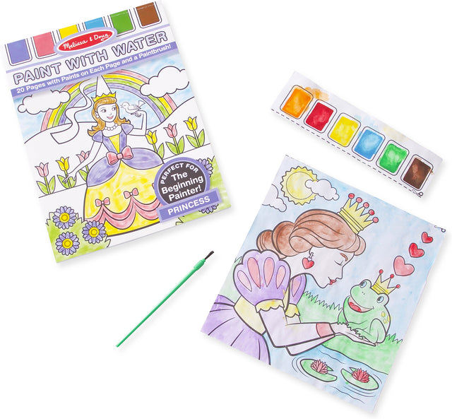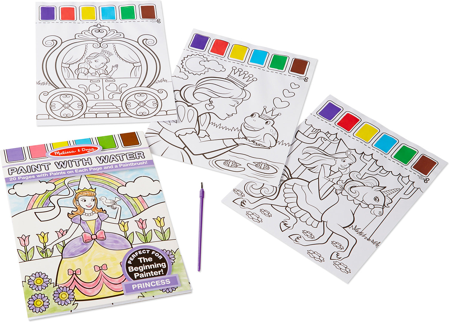 A special paint palette is embedded right in the pages of this all-inclusive paint-with-water art activity. With a cup of water and the included paintbrush, beginning painters can get instant rewards--with no messy paint spills! Twenty picturesque pages show a variety of pretty princess scenes just waiting for your little painter to add a royal touch of color!